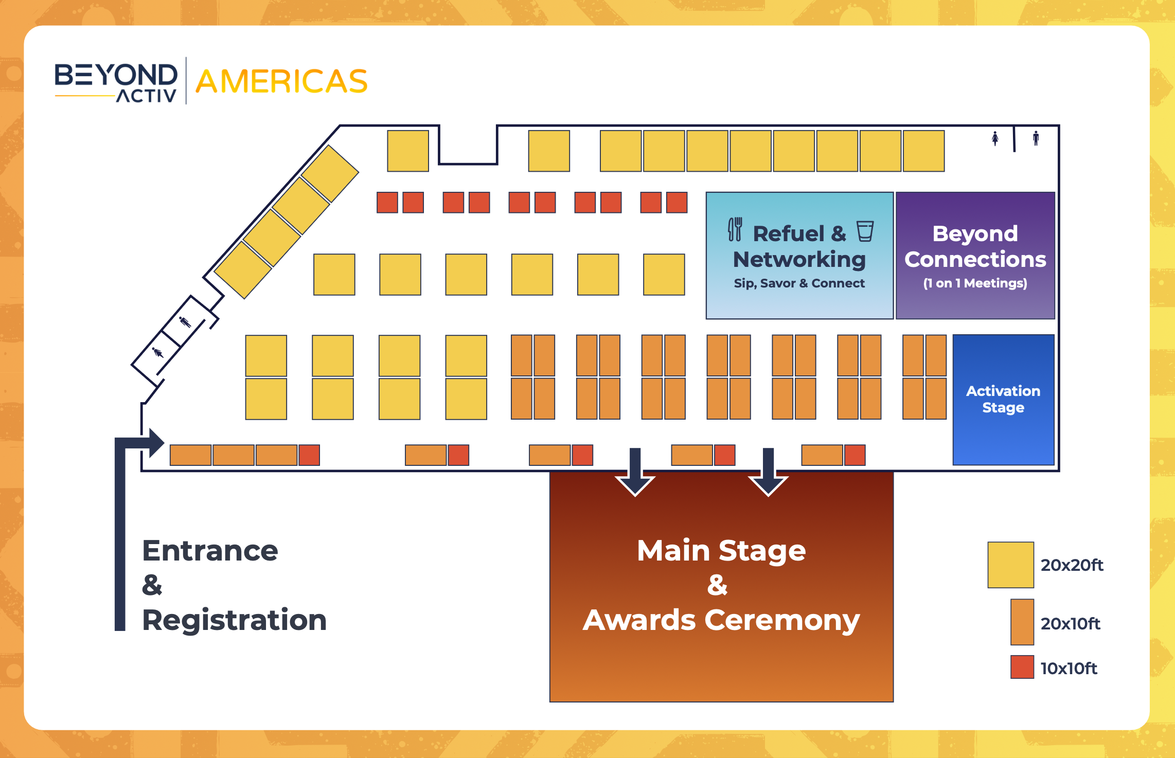 Tenemos una serie de interesantes oportunidades de exposición entre las que puede elegir para mostrar sus productos y servicios. Hay 3 tipos de espacio entre los que elegir. (1) 20 pies x 20 pies, (2) 20 pies x 10 pies y (4) 10 pies x 10 pies. Funcionamos con una exposición de planta abierta para garantizar un entorno experiencial. Cada espacio se suministra con una toma de corriente. Todos los requisitos adicionales de fabricación, instalación y alimentación deben adquirirse a través de nuestra empresa de organización de eventos. Póngase en contacto directamente con nosotros a través de los datos que figuran a continuación para informarse sobre las posibilidades de exposición y los costes. Para reservar su espacio de exposición en 2026, envíe un correo electrónico a Crystal a crystal@beyondactiv.com y/o Jeremy en Jeremy@beyondactiv.com